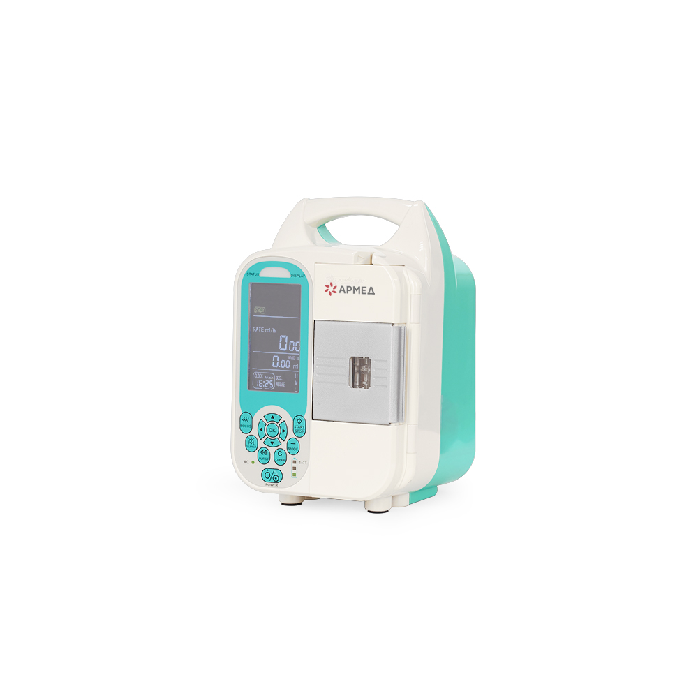 Дозатор медицинский для внутривенного вливания Армед LINS-7 рассчитан на работу с бутылкой с инфузионным раствором. Оборудование может работать от электросети, а также от встроенного аккумулятора. Заряда аккумулятора хватает на 6 часов работы. Дозатор Армед LINS-7 автоматически определяет объем инфузии. Общий объем вливания и скорость инфузионного потока можно настроить вручную с помощью панели управления. Имеется аудио-сопровождение, которое оповещает об ошибках. Его можно регулировать и отключать. Дозатор Армед LINS-7 довольно компактный и весит около 2 кг и предназначен для размещения на инфузионной стойке.