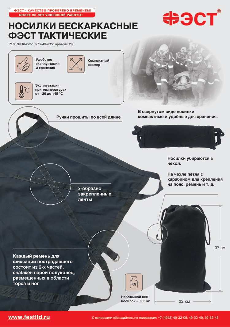Носилки бескаркасные «ФЭСТ» тактические изготовлены в соответствии с ТУ 30.99.10-272-10973749-2022.