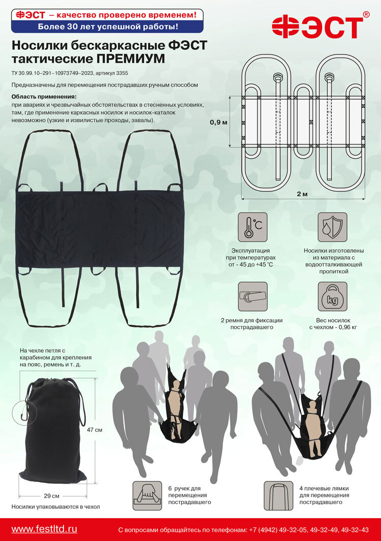 Носилки бескаркасные «ФЭСТ» тактические (премиум) изготовлены в соответствии с ТУ 30.99.10-272-10973749-2022.