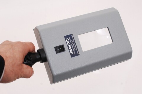 Облучатель люминесцентный «Сапфир» (лампа Вуда), предназначенная для излучения ультрафиолетового света (с длиной волны приблизительно 365 нм) для освещения частей тела для регистрации флуоресценции в диагностических целях.