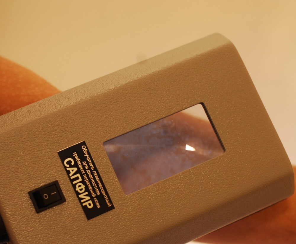 С помощью люминесцентного облучателя можно определять заболевания кожи не только на открытых участках, но и под ногтями, волосами, на слизистых оболочках.