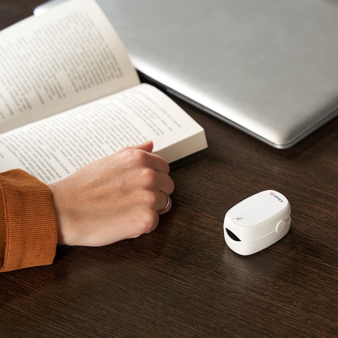 Бескнопочная конструкция прибора не требует управления. Достаточно разместить пульсоксиметр на пальце, и он автоматически включится и произведёт замер. Отключается устройство также автоматически через 8 секунд бездействия, что значительно экономит заряд батарейки.