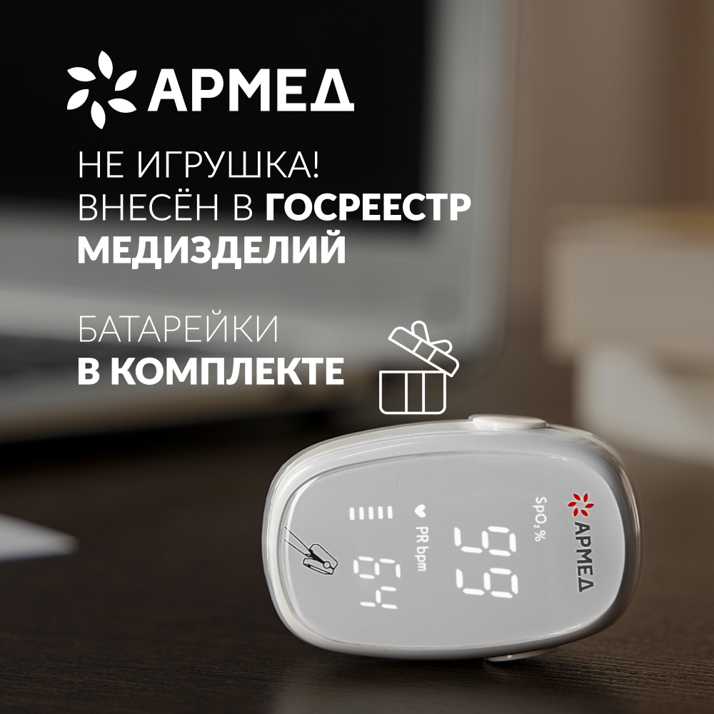 Пульсоксиметр Армед YX303 является медицинским изделием и имеет регистрационное удостоверение. Кроме того, прибор продаётся уже с поверкой — это значит, что он прошёл все необходимые метрологические испытания. На устройство действует гарантия 1 год.