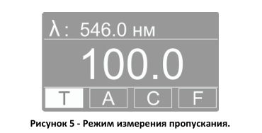 коэффициента пропускания, оптической плотности или концентрации в зависимости от выбранного режима измерения.