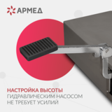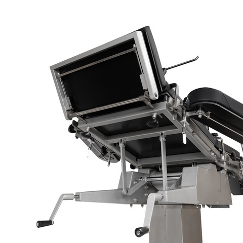 Благодаря цилиндрическому приводу угол наклона стола меняется плавно и без опасных рывков. Боковые углы наклона ложа, а также положение ног относительно головы (Тренделенбург/Антитренделенбург) настраиваются ручным червячным механизмом.