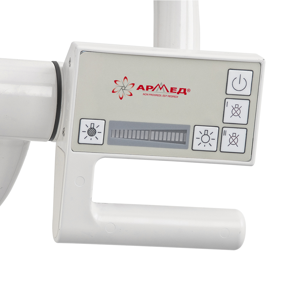 - Оснащение: стерильная ручка, панель управления, запасная лампа