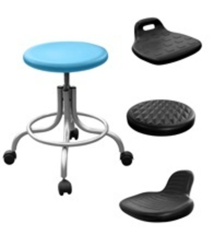 Табурет Т08 на винтовой опоре может комплектоваться 4-мя видами полиуретановых сидений.