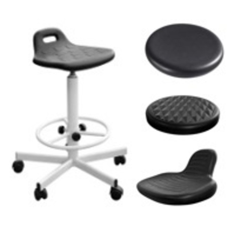 Табурет Т09/К на винтовой опоре может комплектоваться 4-мя видами полиуретановых сидений:
