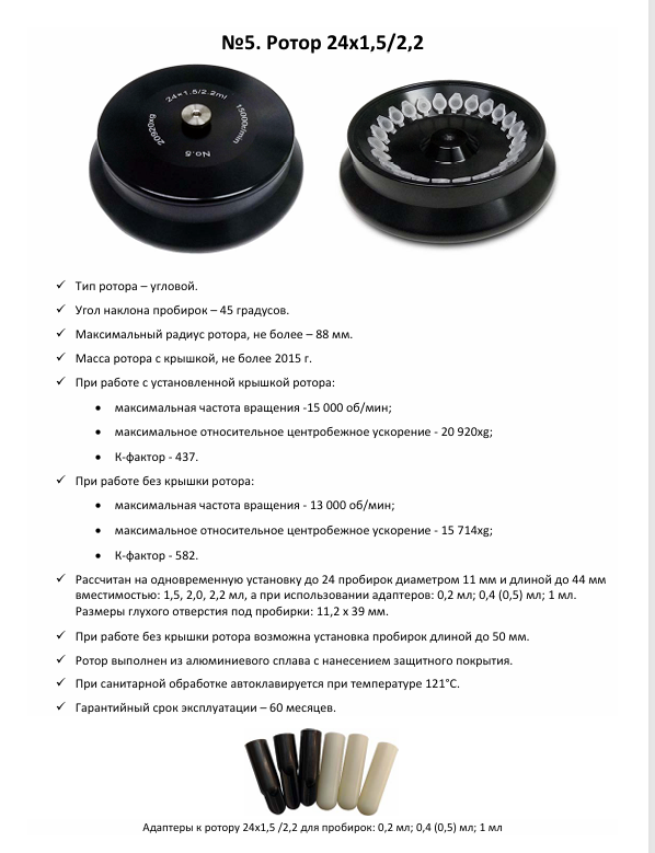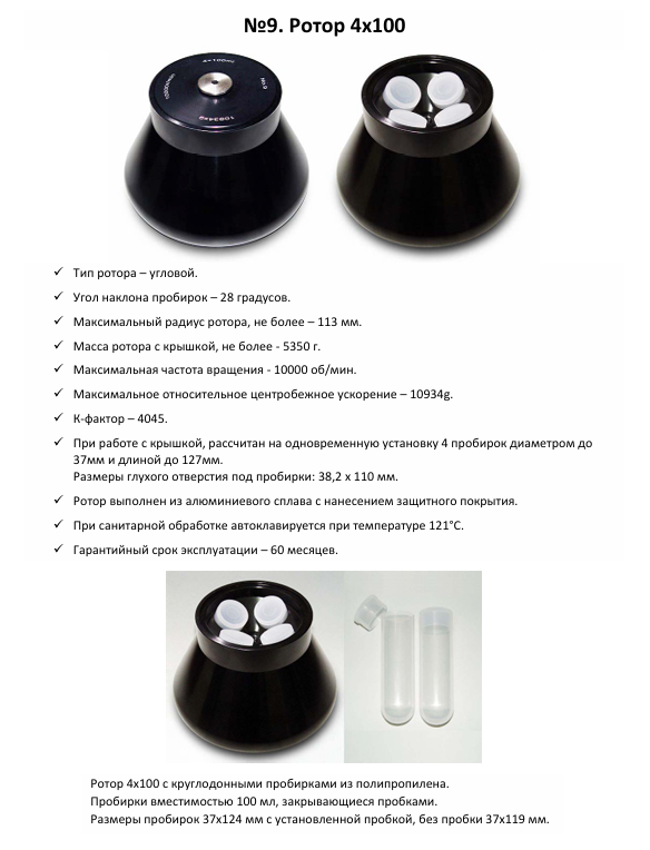 Со всеми роторами, за исключением ротора 12х10 мл, поставляются два комплекта пробирок.